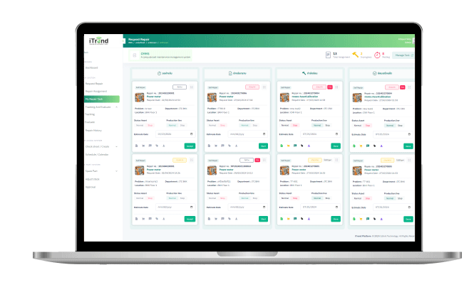 Problems can be reported through the system. The system will analyze and assign work to the responsible engineer. Supervisors can track the progress of maintenance work in real time through a dashboard that displays complete information such as job status and time spent on repairs